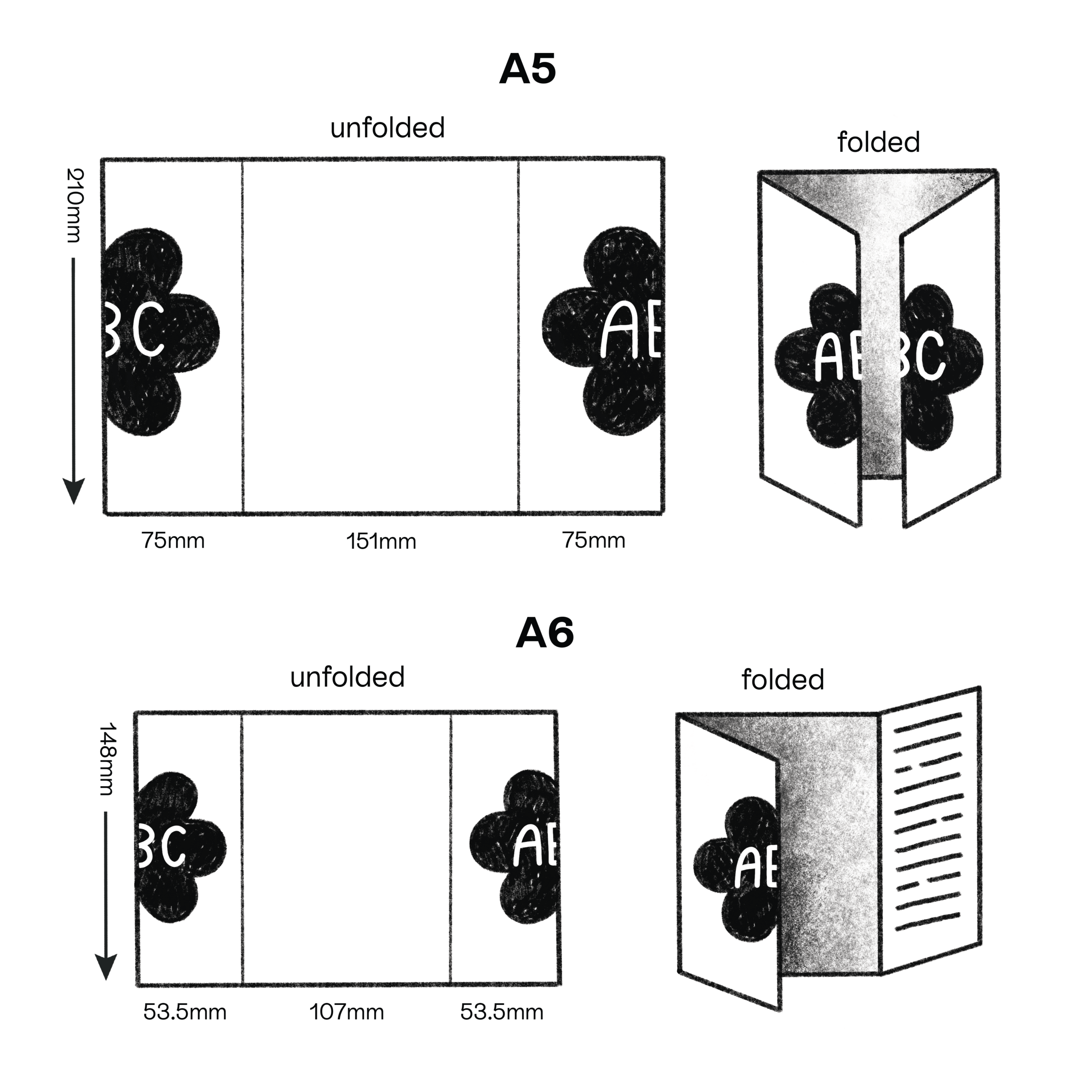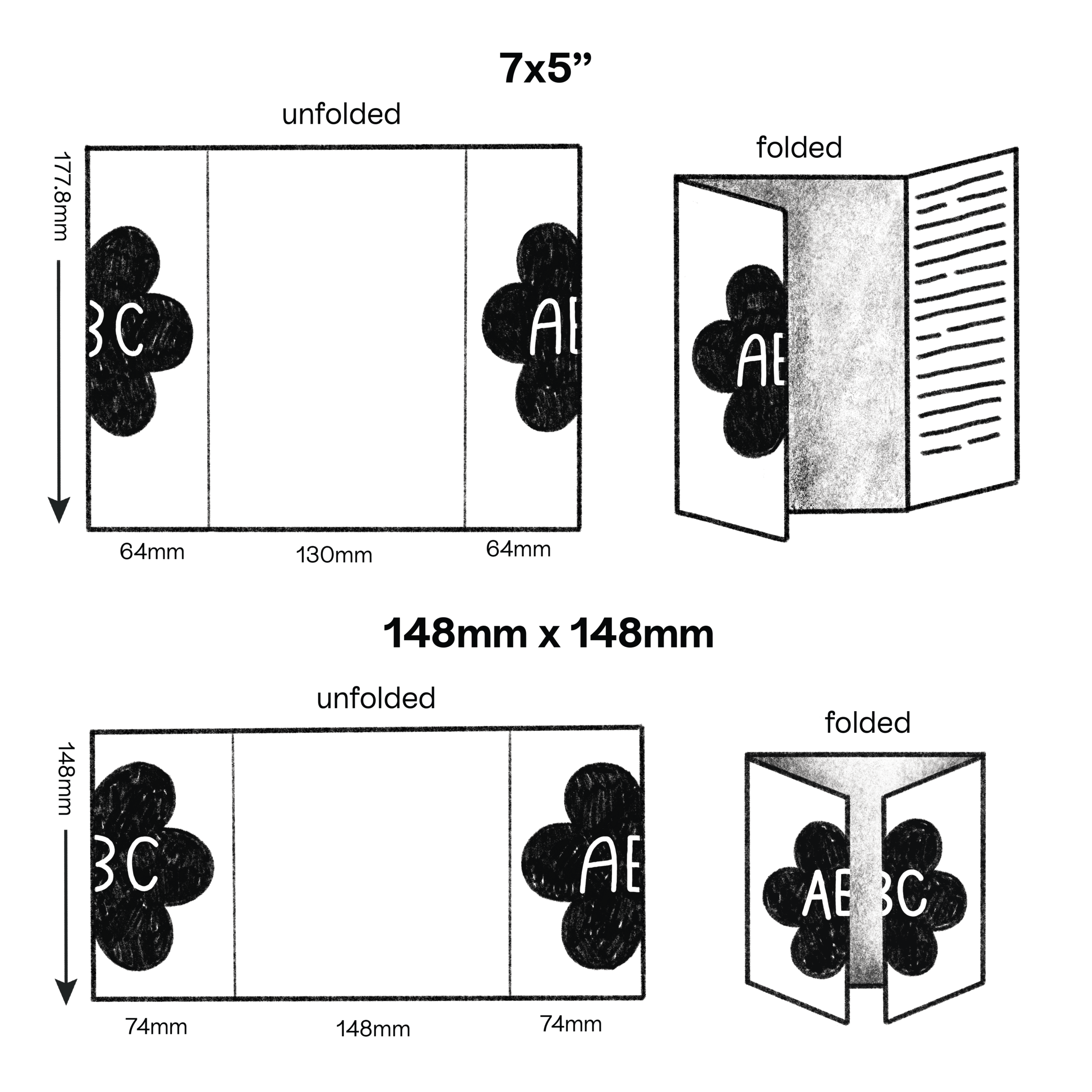 - Avoid full colour darker tones in your designs, as this can cause cracking along the fold lines.